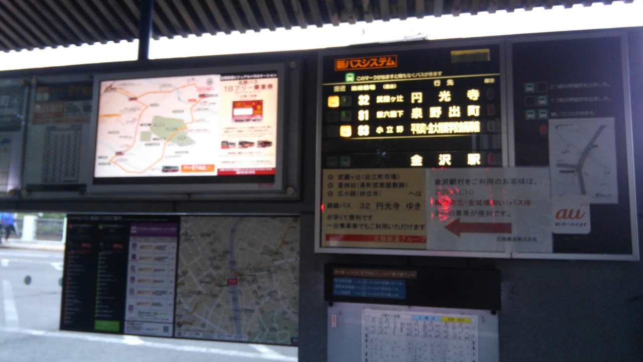 金沢市内で色々な観光地に行くのに便利なのが路線バスです、もちろん急いでいるときにはタクシーを利用したりもしましたが。市内を歩いているとバスの多さに驚きます、複数の路線バスが。平日に行ったのでバスはそれほど混んでいなくて快適でした。バスだと町の様子も見えるし、楽しいです。