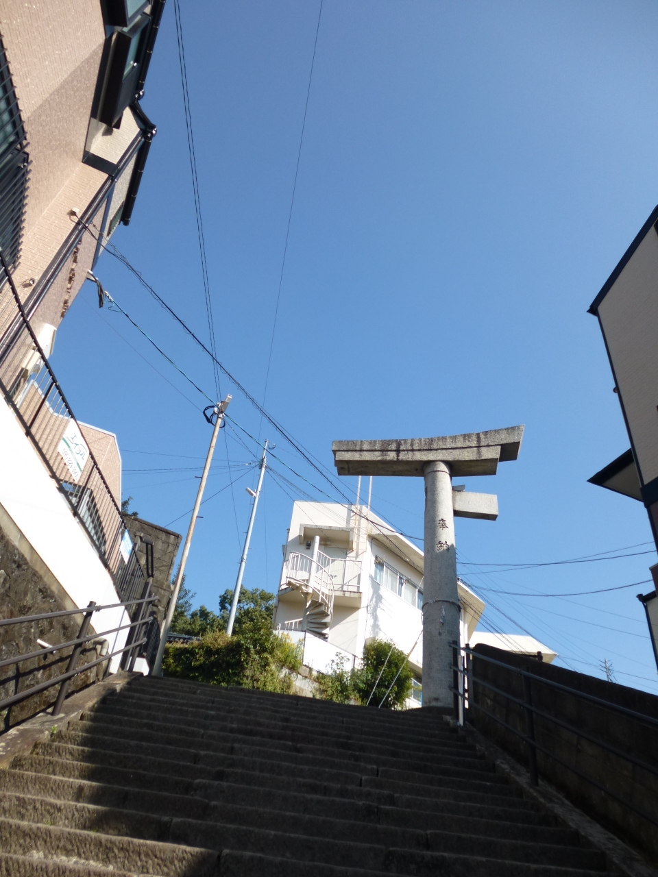 長崎原爆資料館から南へ10分ほど歩いたところに、山王神社の二の鳥居があります。山王神社は爆心地から南東約900mのところにありました。社殿は跡形もなく崩れ参道に4本あった鳥居も二の鳥居の片側の橋を残し、崩れてしまいました。階段を上がり、この鳥居の奥には片側の残骸がそのまま置かれています。片側だけで立つこの鳥居の姿が、観光客にも戦争の残すものを視覚的に訴えられると思います。