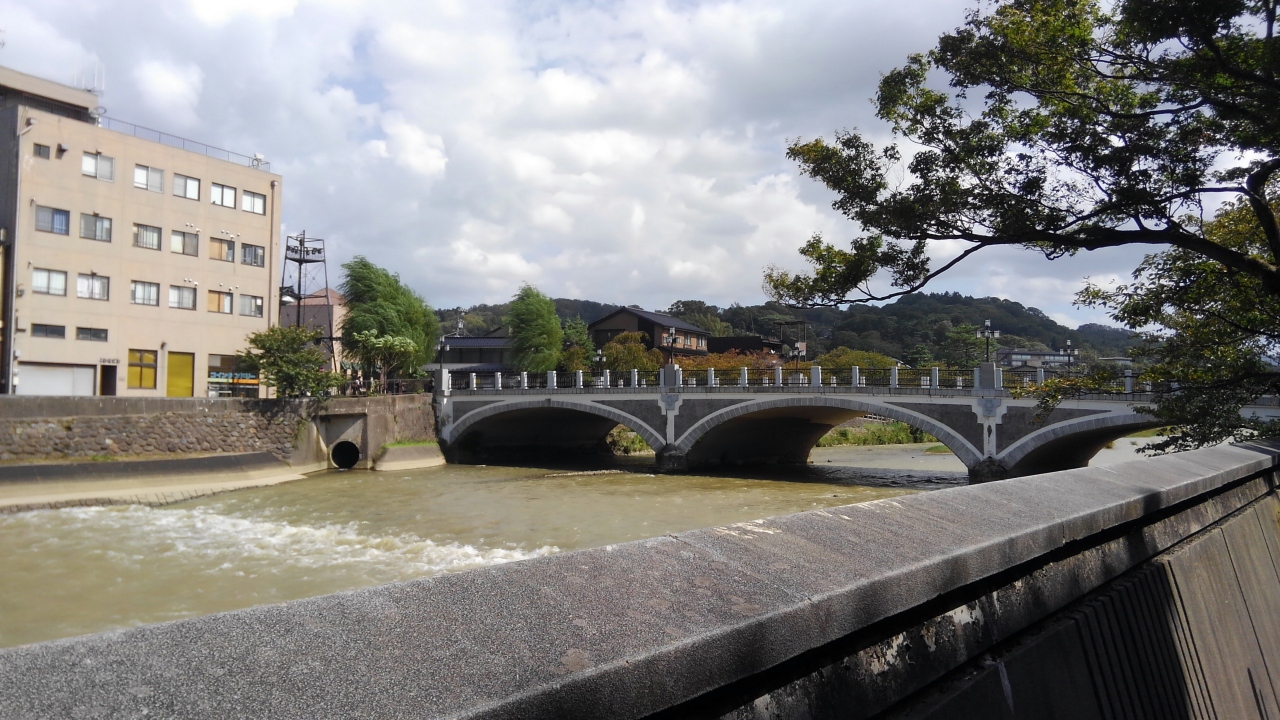 浅野川大橋は、主計町茶屋街からひがし茶屋街に行くときにも、そのほかバスでも何度かわたりましたが、アーチが美しい橋で、有形登録文化財に指定されています。結構交通量も多くて、橋場町バス停からすぐ近くにあります。