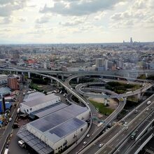 東大阪市役所は東大阪JCTのすぐ脇にあるので、ジャンクションという巨大構造物を真上から見下ろせます。車がひっきりなしに通っていくので、見ていて飽きないです。よくこんな大きなものを作ったなと感心します。展望ロビーからは生駒山や大阪城、あべのハルカスなどを見れますが、写真は近隣住民のプライバシーということで、不可でした。唯一、東大阪JCTを見下ろす窓だけが写真可です。
