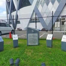 全国の高校生ラガーマンは花園を目指す。野球で言う甲子園のような聖地です。2019年にラグビーワールドカップが開かれるのに合わせてスタンドを改修し、現在の姿に生まれ変わりました。入口手前には、ラグビーワールドカップを記念したモニュメントが立っていました。
