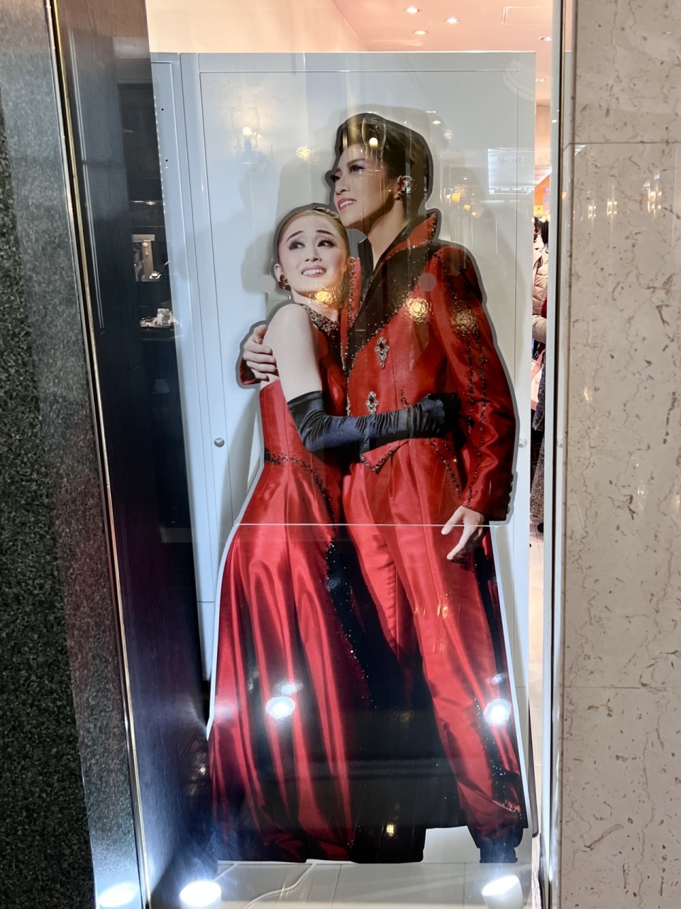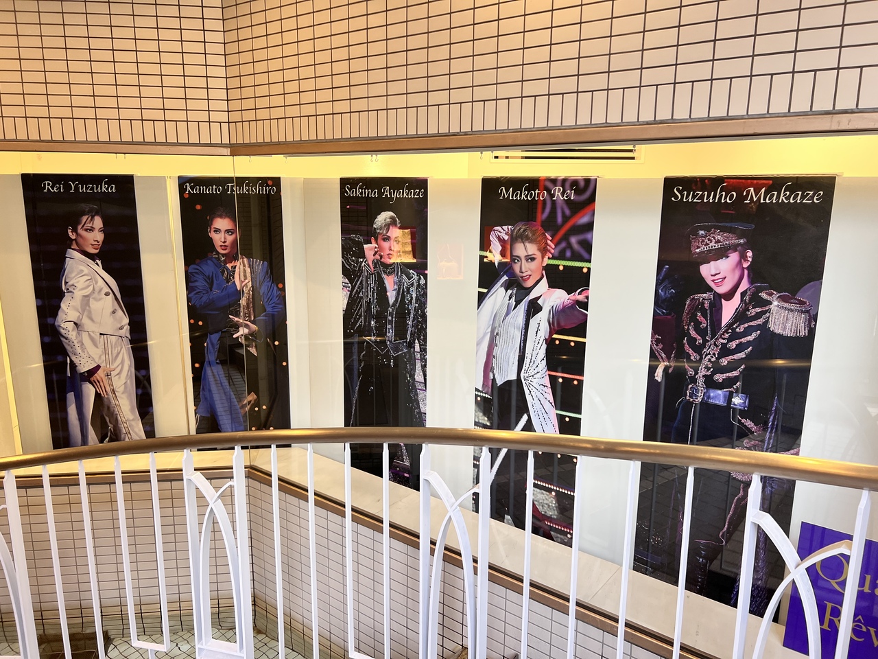 地下へと続く階段には、5組トップスターの等身大タペストリーが飾ってありました。