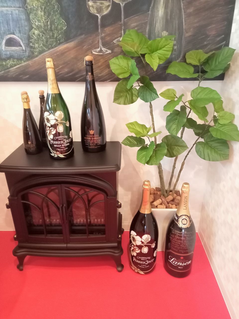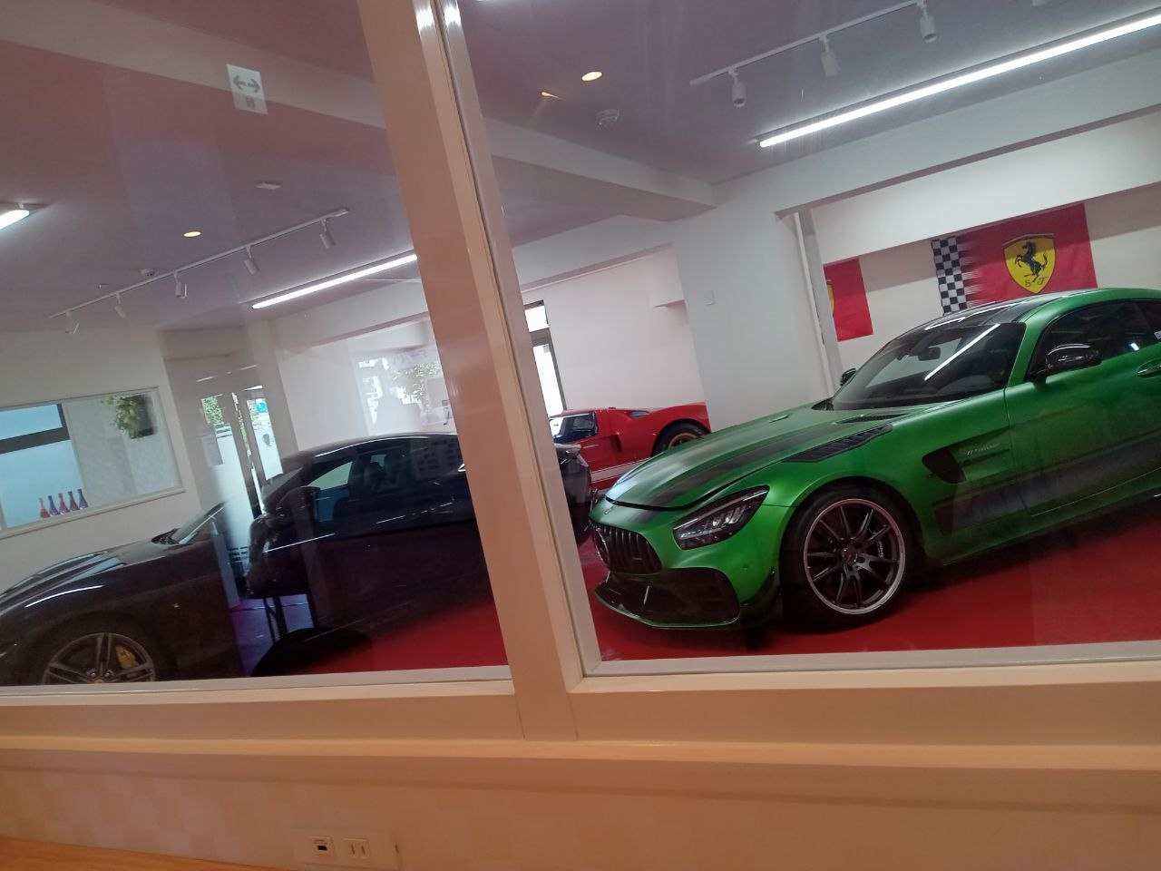 フェラーリなど、外国車が店内に展示されているカフェ。ワインボトルの展示もあります。店内はキレイで、普段は静かで落ち着いた感じ。イベントの日は、大人や子どもたちが集まりにぎやかです。
