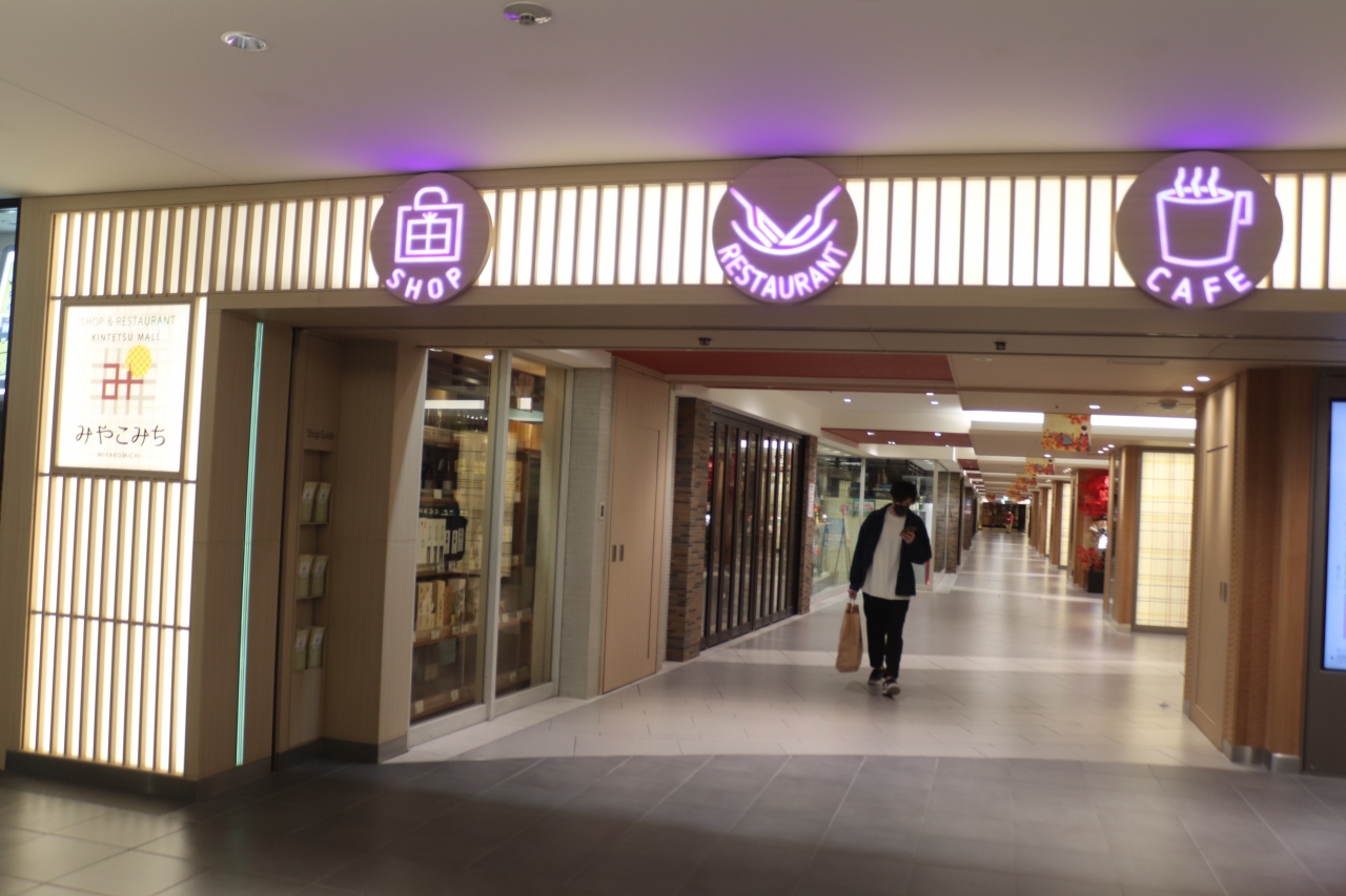 近鉄京都駅の直下、駅ビルに1階に広がるレストランショップ街です。40ほどの店舗が並んでいます。京都駅八条口の大阪寄りになります。ショップやレストランの営業時間外も駅構内の1階通路として通り抜けることができます。