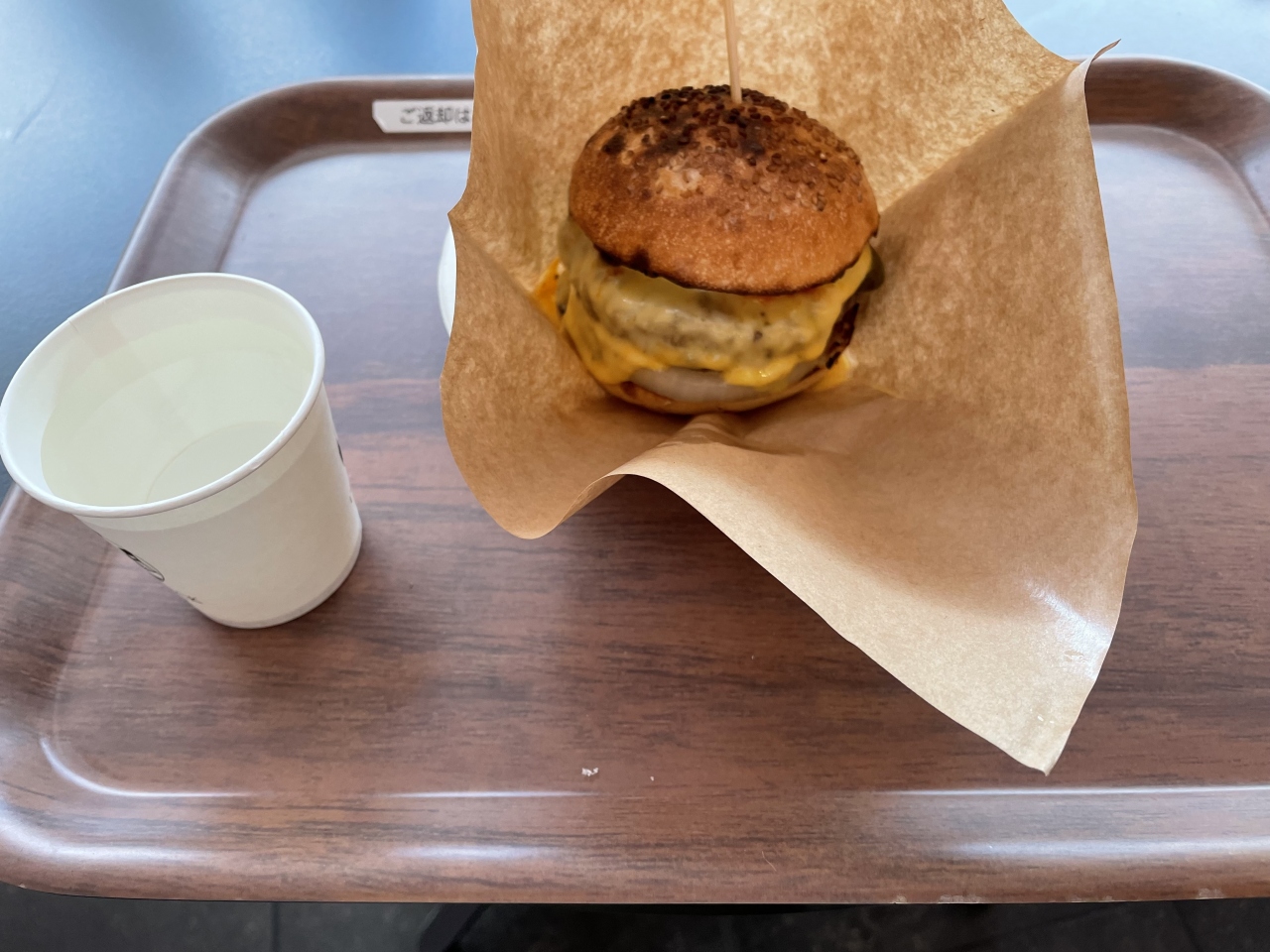羽田空港第2ターミナル3階。先払いでクレジットカードなどが使えます。バーガー類は単品でも1000円以上とお高めですが、意外と大きく味もしっかりついていて美味しかったです。席はほかの店と共用で通路脇にあります。