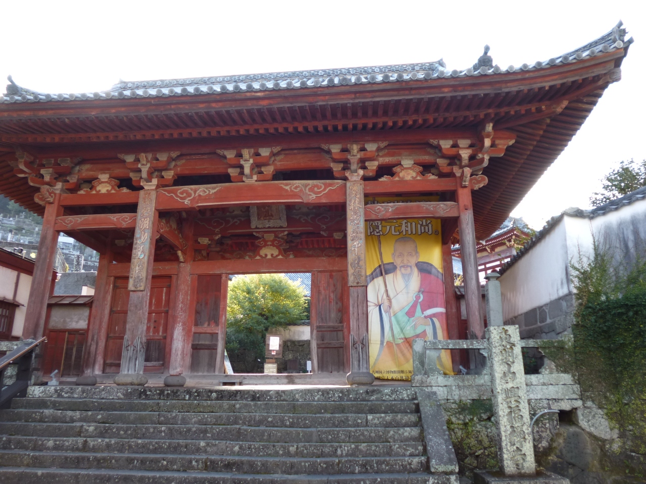 長崎の風頭公園の麓にある寺町。その中でも一番目を引く朱色の山門がこの興福寺です。黄檗宗は臨済宗や曹洞宗と並ぶ日本三禅宗の1つですが、江戸時代になってから伝来した比較的新しい宗派なので、古くに伝来した他の宗派に比べると唐の色合いを深く残しているようです。在留唐人等はキリスト教の信者でないことを示すためにこのお寺を建て、海上の安全を祈願したそうです。境内には国指定重要文化財の唐人屋敷住宅門や長崎聖堂の大成殿と杏檀門があります。