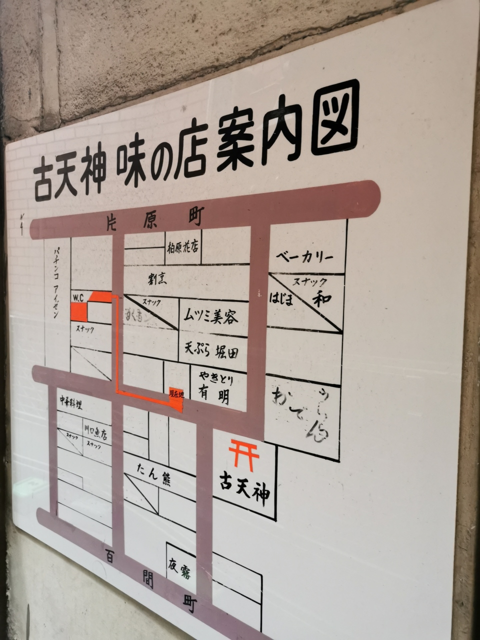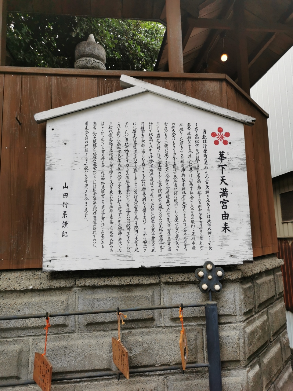 高松観光でしないを散策。アーケードが立派な片原町東部商店街から古天神と言う横丁に入ると昭和なスナックなどが並ぶ路地になります。その奥に華下天満宮の小さな社がありました。由来書を読みますと、昭和20年の高松空襲で全焼したとの事です。とても雰囲気が良い場所でした。