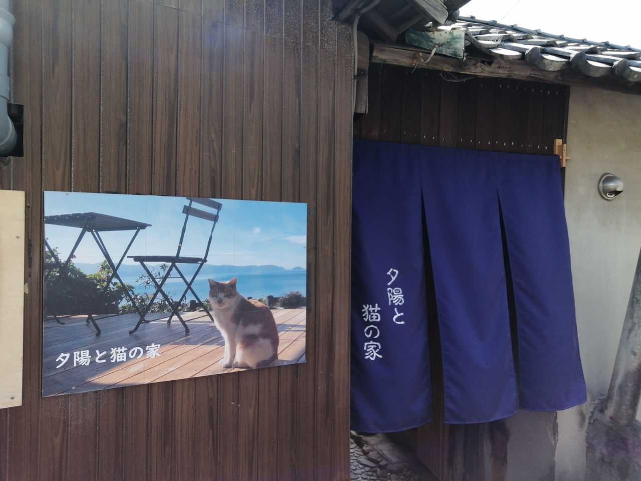 名前のとおり猫と戯れられます。斜面に建っているので瀬戸内海が一望できます。きっと素晴らしい夕陽が眺められるんでしょうね。夏場は男木島に宿泊しないと見れないですが…。