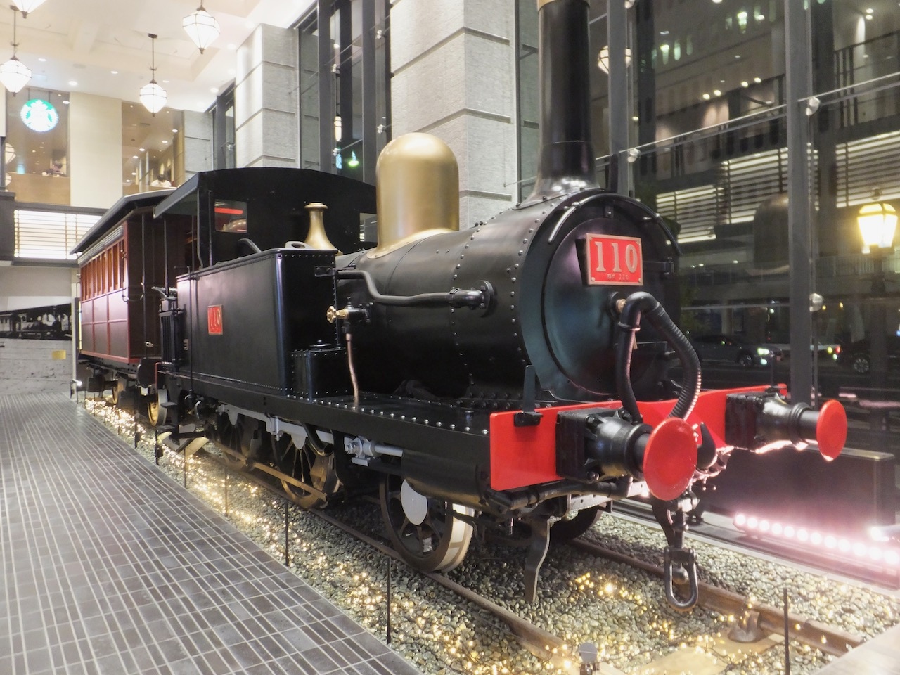 開業時のSLと客車の展示は迫力と存在感十分。客車に入ることはできませんが当時の客車は貫通扉はないので中を覗くことはできます。