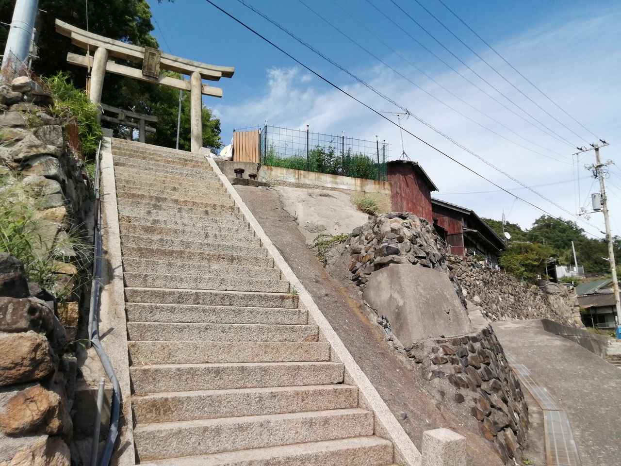 男木島集落の一番上部に鎮座しています。まさに男木島の鎮守様といった感じ。港にある男木交流館の裏手に一の鳥居があり、参道が続いています。最後に急な階段を上がると到着。眼下の集落と瀬戸内海の眺めがいいです。絵になる風景でもあり、絵になる神社でもあります。間違いなく男木島のマストスポットです。