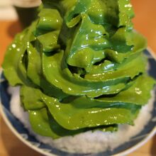 東山通りを智積院から50m程下った西側に茶問屋の茶匠清水一芳園 京都本店があります。本店であるこの店舗では、カフェがあります。今夏、ここのかき氷を食べに行きました。4時過ぎに着くと店前には5組程の列。しかし、10分程で入れました。頂いたのは宇治抹茶氷 エスプーマ仕立て。初めてにエスプーマかき氷で、食べてみると軽いムースのようです。エスプーマは冷たく感じないので、キーンと来るかき氷を食べたい人にはお薦めしません。