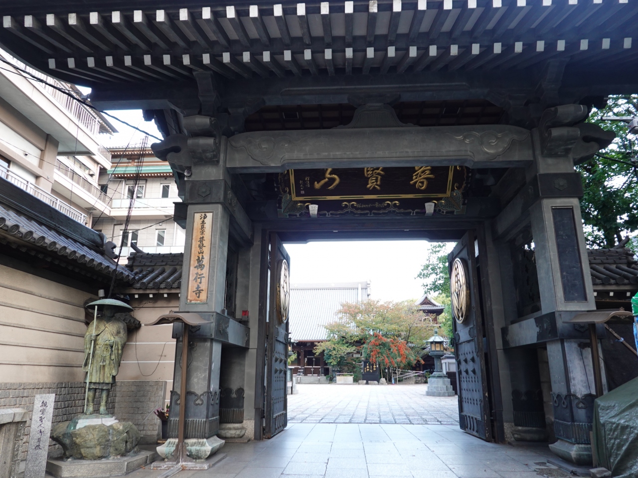 博多駅から徒歩で10分ほど、櫛田神社の南東すぐのところにあるお寺です。福岡を代表する浄土真宗の寺院のひとつだそうです。薄幸の遊女名月のお墓があり、初七日に蓮花が咲いたという伝説が残っているそうです。創建時から本願寺との関わりが強かったことから山門の寺紋は、毛利家から裏紋であるおもだか紋を与えられたそうです。山門もじっくり見てみてください。