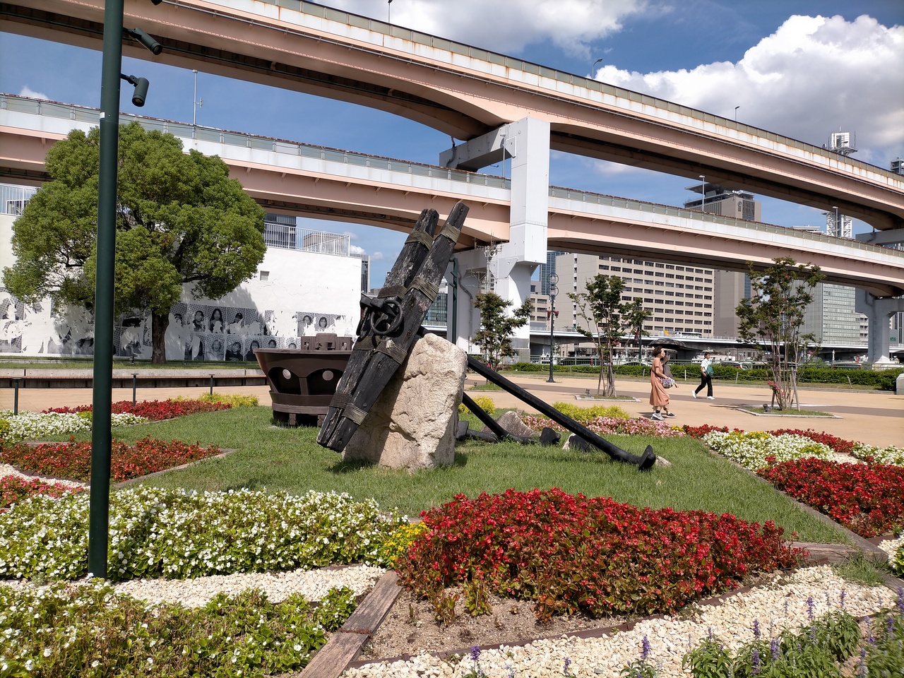 サンタマリア号のモニュメントは、メリケンパークのホテルオークラの近くにあります。サンタマリア号は、コロンブスが、アメリカ大陸の発見したときの船です。このモニュメントは、1992年にコロンブスのアメリカ大陸到達500年を記念してバルセロナで復元建造されたものの望楼とアンカー部分を展示したものです。