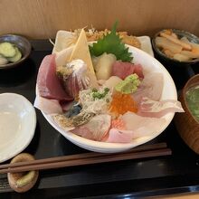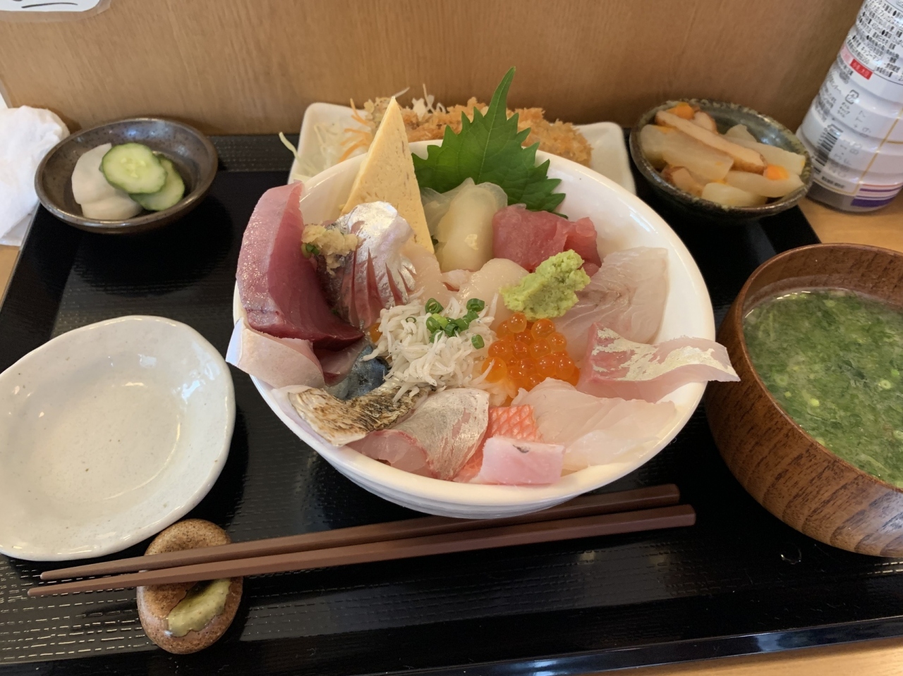 平日の2時近くに到着したので、すぐに入れました。カウンター内には、若い女の子たちが料理をしてくれています。お値段もリーズナブルで、煮魚とかありましたが、やはりここは海鮮丼を頂きました。お刺身も新鮮でとても美味しかったです。