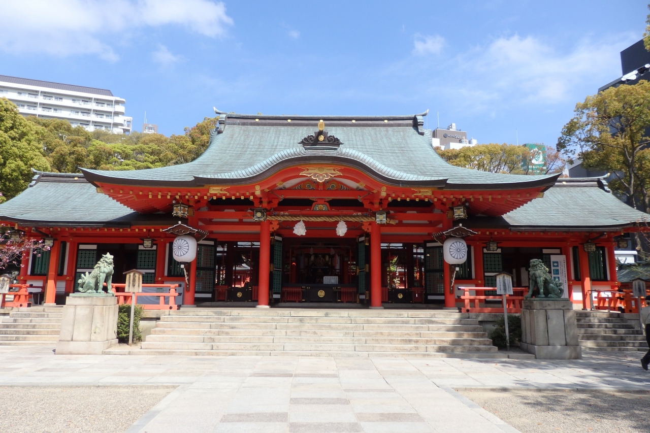 商店街の中にあり、鳥居と同様真っ赤な本殿がインパクトあります。