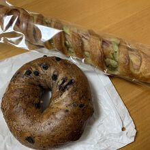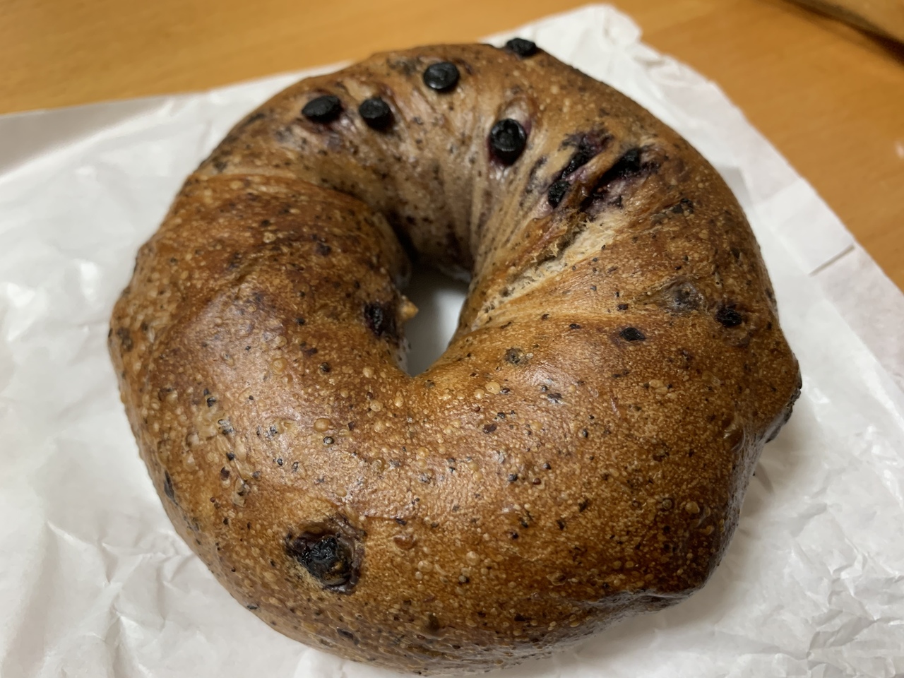 紅茶ブルーベリーベーグル¥360とアボカドベーコン¥350を持ち帰り購入。