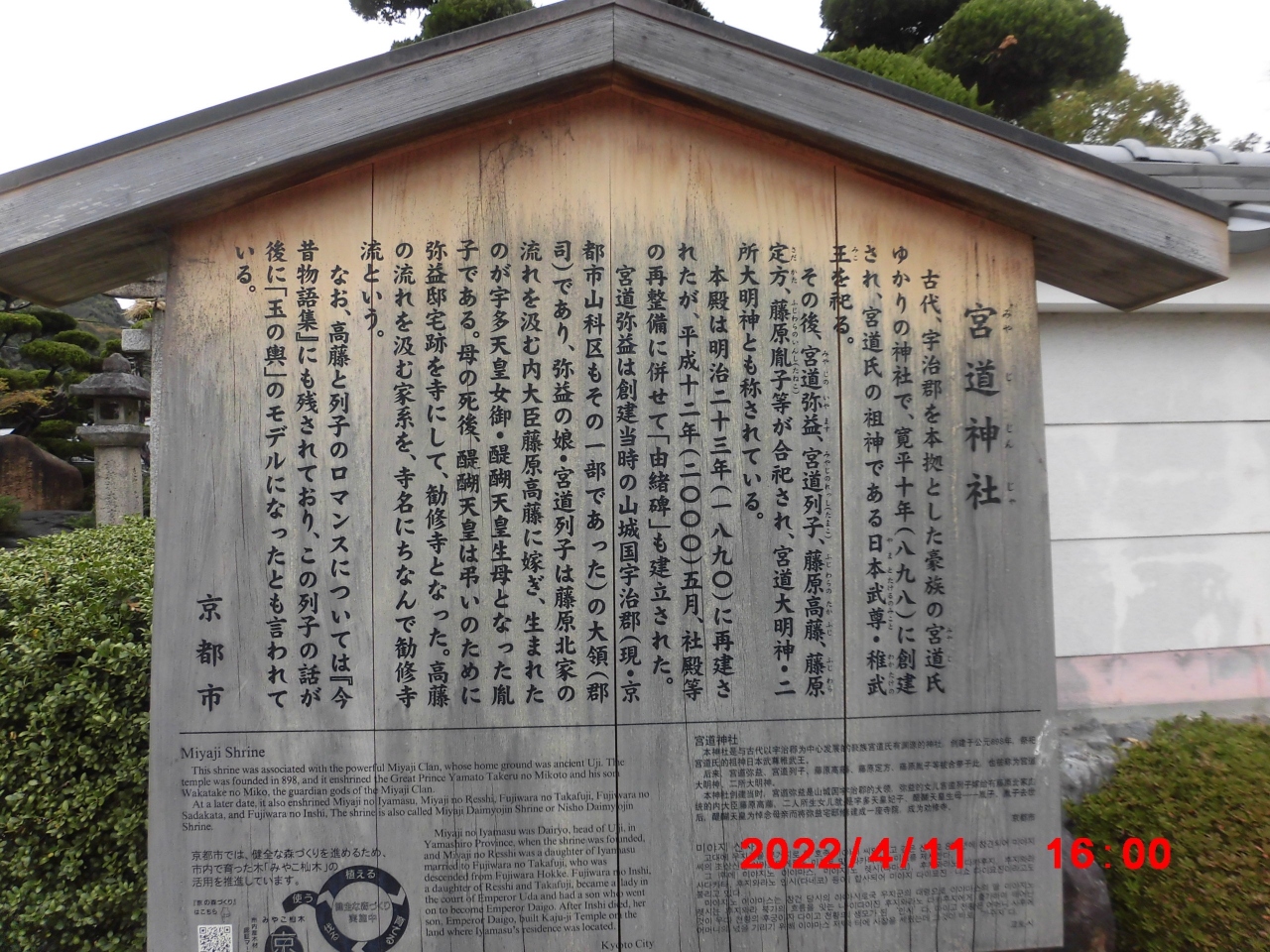 京都市観光で立ち寄りました。宮道神社は、山科にあった神社で広い敷地の勧修寺の南に隣接しているコンパクトな神社でした。説明板によると、創建は9世紀末で、神社の名前になっている宮道氏により建立された宮道氏ゆかりの神社です。17世紀後半に、勧修寺所縁の藤原高藤、藤原定方らを合祀したとなってます。現在の本殿は1890年に再建されたそうです。
