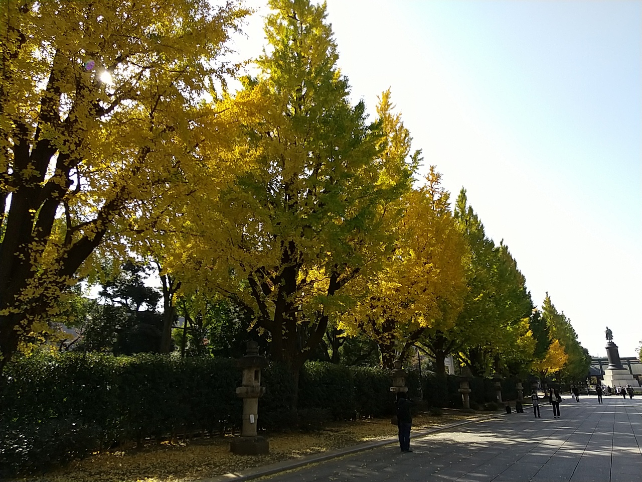 11月中旬に行きましたが、広い参道の両側にイチョウ並木が整備されており、金色の素晴らしい光景でした。