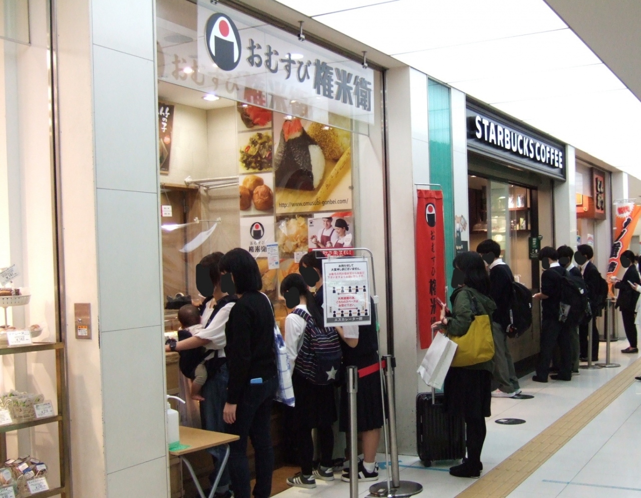 新横浜駅の新幹線改札を出て、駅出口の手前を右に進んだ、スターバックスの手前にあるおにぎり屋さん。種類豊富なおにぎりが並んでおり、新幹線の中で食べるのにも便利です。