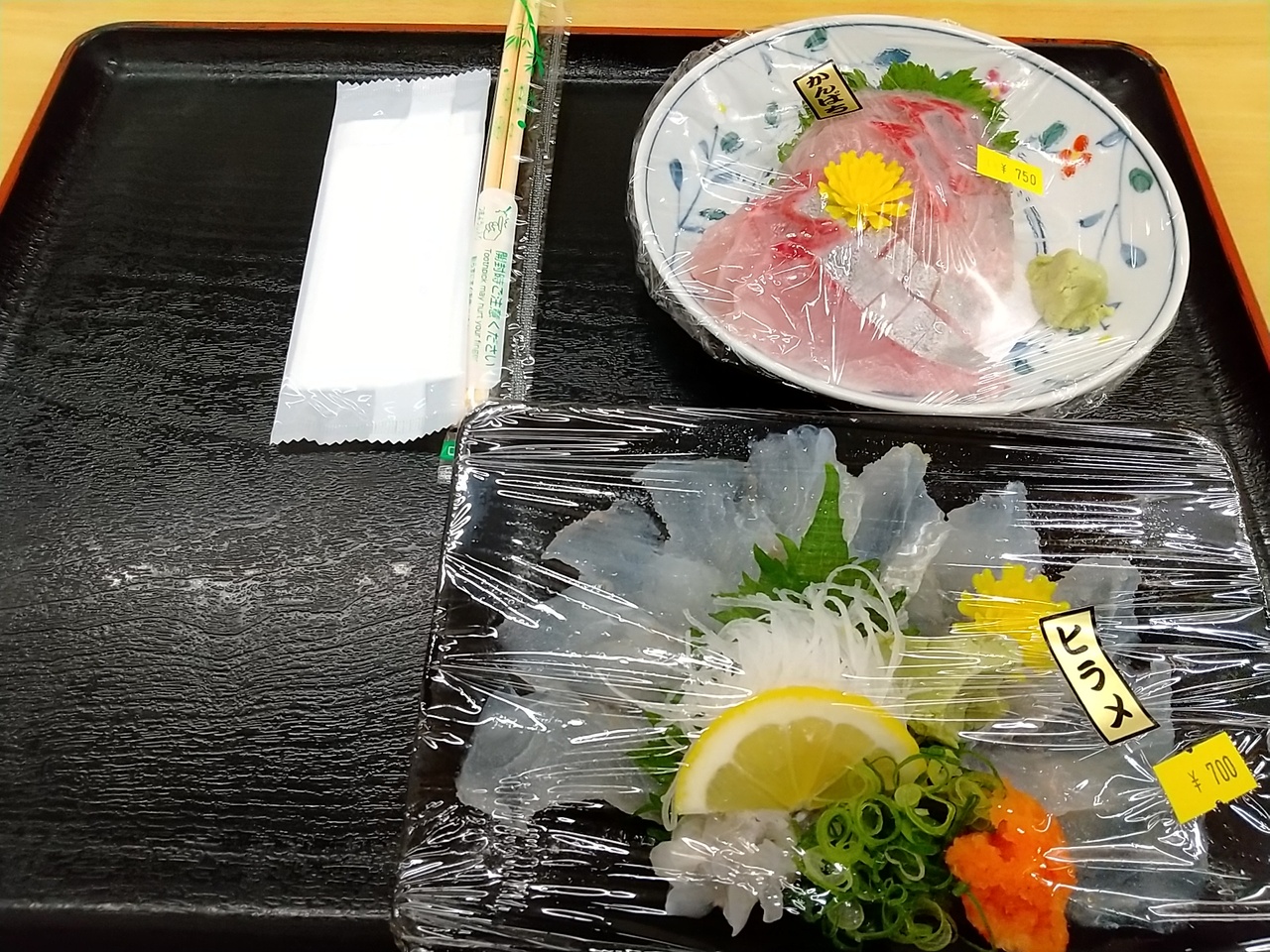 飲食施設では海鮮丼や刺身、焼き物などを食べることができます。席数はかなりありますが、それ以上に観光客が多いので席取りが結構大変でした。