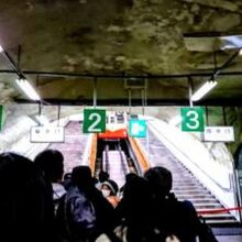 扇沢から黒部ダムを歩いてわたり進んでいくと現れるのが黒部ケーブルカー。約5分の間に数百メートルの標高を上がっていく。乗客が多いときは扇沢から黒部ダムまでバスが何台も連なって走るがケーブルカーは2編成でピストン輸送になるため、ここでは乗客の渋滞が発生する。ピーク時は早い時間帯に乗っていったほうが良い。
