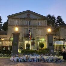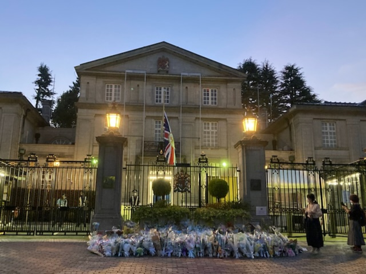 20年振りくらいでしょうか、イギリス大使館に行ってみました。とはいってもイギリス大使館に用事があったわけではなく、エリザベス女王陛下の逝去に伴うたくさんの献花の様子を見に行ったのです。大使館の門は閉ざされていましたが、門の向こうにはイギリス国旗が半旗になっており、門の前には確かにたくさんの献花やイギリス国旗、手紙などが置かれておりました。