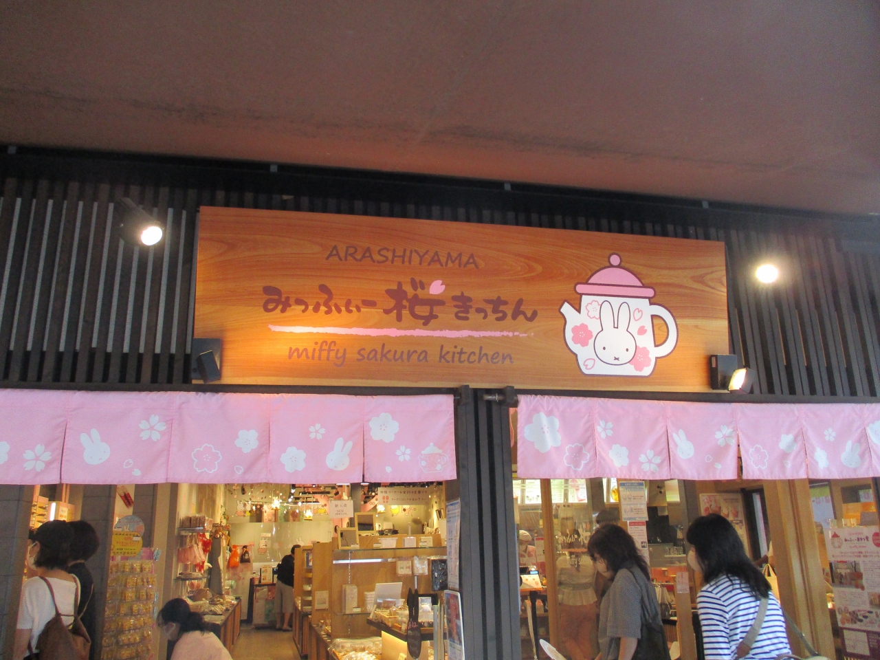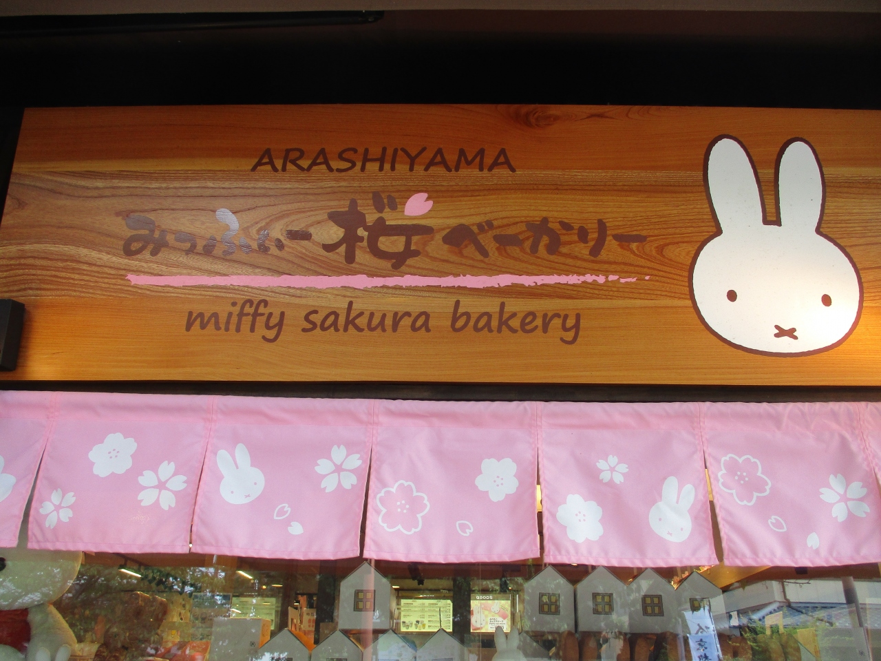 嵐山のメイン通りにお店があります。みっふぃーのパン屋さんです。ひさしぶりに行きました。おいしいのと、早めに買っておいた方がいいのがわかっていたので行ってすぐ買おうとしましたが、訪れた日は商品が前より少ない気がしました。もう売り切れてしまったのかな。みっふぃーのあんぱん、キューブ型のパン、菓子パンなどありました。日持ちがする袋入りパン、缶入りパンもあります。お店の横に立ってですがすぐ食べることができるコーナーがあります。奥にみっふぃーの人形が立っています。