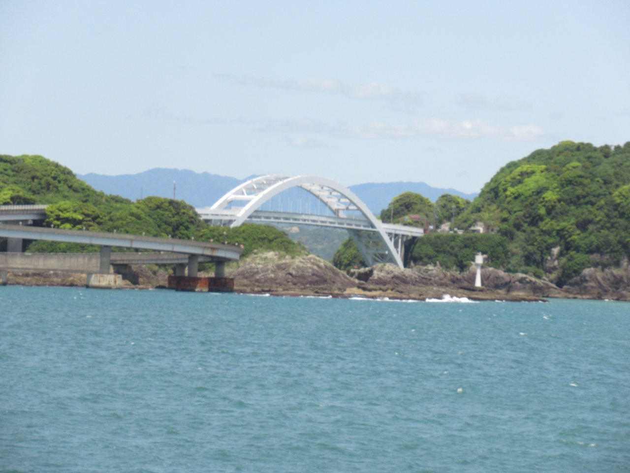 我々は、観光バスのマグトル号に乗車して、串本の有名な奇岩「橋杭岩」を眺めてから、潮岬を観光してくしもと大橋を渡り紀伊大島に向かうルートを進みました。