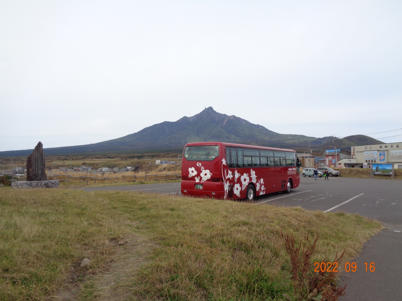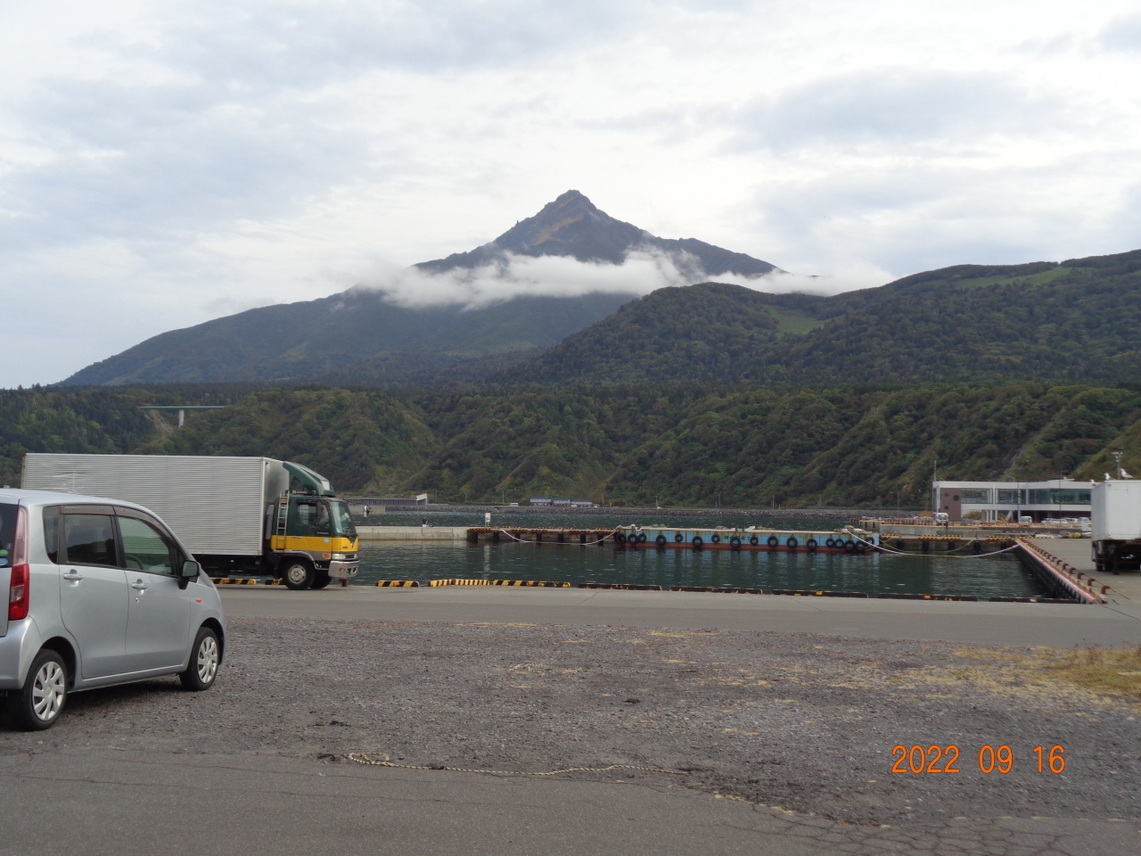 9月15日~9月17日に最北限の島=礼文島に行きました。1日目の稚内港から礼文島の港までの間に左側に利尻富士が見え、2日目は利尻島に上陸で利尻富士が見え、3日目は利尻島(鴛泊港)から稚内港に行く際は右側に見え、3日間毎日のように利尻山(利尻富士)が見えました。考えてみると常に利尻山で、この山が無いと(見えないと)離れ島に行っただけになってしまいます。私たちは幸いにも3日間見れ幸運でした。数日後の団体さんは見れなかったようです。残念なのは青空では無かったことです。