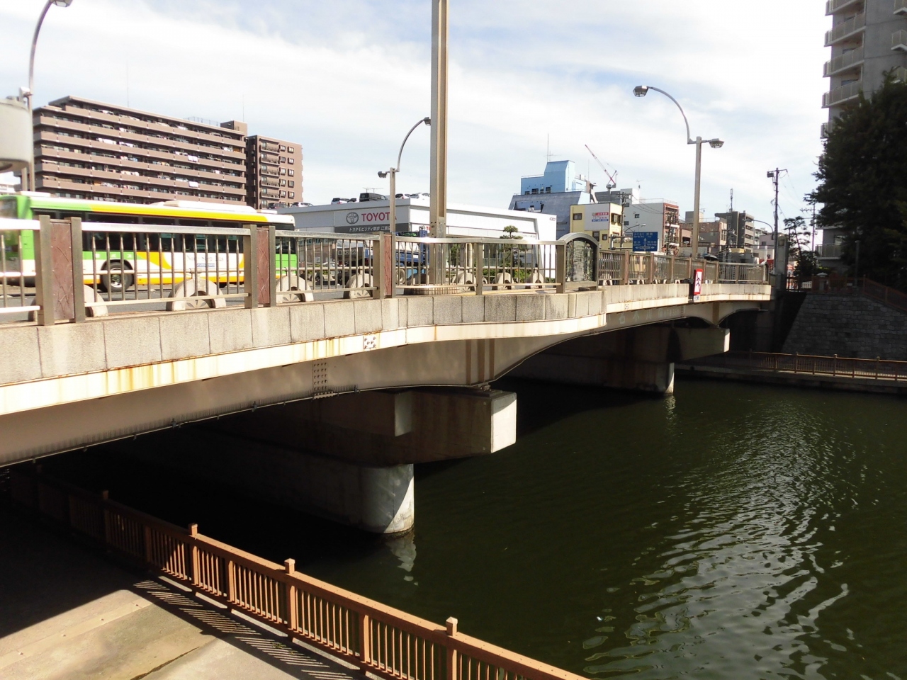 隅田川から旧中川まで江東区内を真っすぐにのびている小名木川に架かっている橋です。小名木川にはいくつも橋が架けられていますが、なぜかこの橋は川と同じ名称が付けられています。理由は不明ですが、四ツ目通りの橋なので、交通量も多くて長さはなくても幅も広い橋だと思いました。