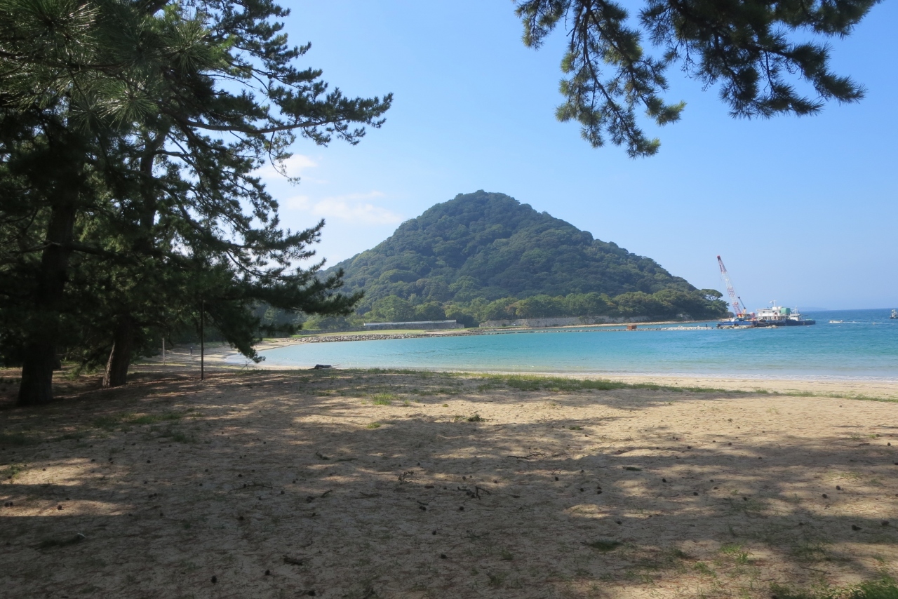 萩城跡から浜崎港まで続いている砂浜が菊ケ浜です。特に防風林になっている松が見事です。砂浜に入って左手を見れば、きれいな形の指月山が見えます。沖合右手には火山であった笠山が望めますし、火山の噴火でできた島々も望めます。訪れた時は海水浴シーズンが終わったところで人は少なかったのですが、松の木陰にいると海風が心地よかったです。海水浴場としても波が荒くなく良さそうに思いました。