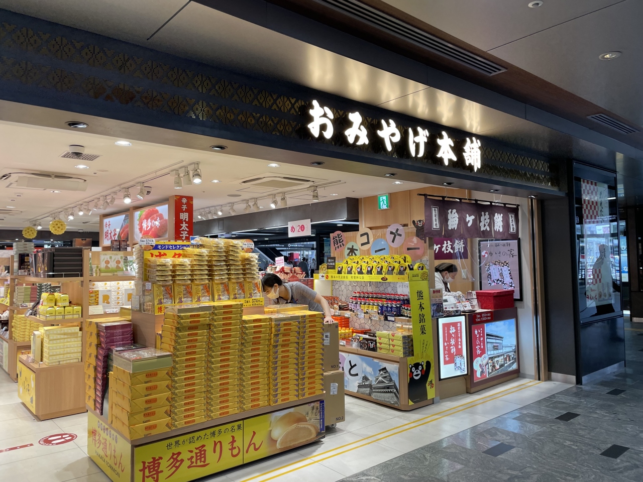 博多駅新幹線中央改札のすぐ目の前にあるお土産屋さんです。朝早くから夜遅くまで営業しているのでとても便利で使いやすい店舗です。それ程広くはないですが、定番の博多土産からオリジナル商品まで品揃えは充実しています。平日夜でしたが、お客さんも次々と入って買物していました。
