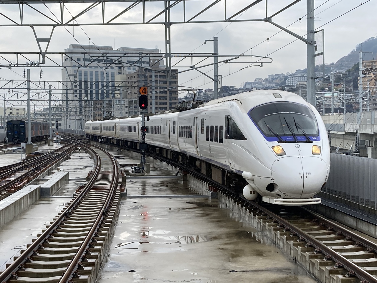 博多から鹿児島本線、長崎本線を経由して長崎までの153.9kmを、1時間50分~2時間10分で結ぶJR九州の特急。1日22往復運転され、毎時1本または2本運行。このほか門司港~佐賀、博多~佐賀、肥前鹿島→博多などの区間特急が数本ある。さらに多客期には臨時列車も数本設定されています。