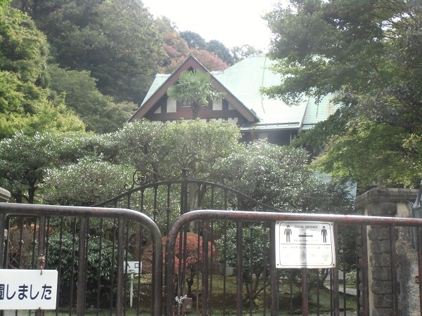 説明板によると、昭和4年春、華頂博信侯爵邸として建てられたもので、神奈川県の戦前の洋風住宅建築としては鎌倉文学館に次ぐ大規模なものです。