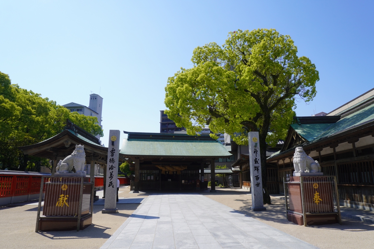 十日恵比須神社は、東公園の隣り。社伝によれば、天正19年(1591年)、香椎宮大宮司家の分家が香椎浜に流れついた恵比須神の神像2体を得たことに始まるということ。もともとは崇福寺境内にあったようです。