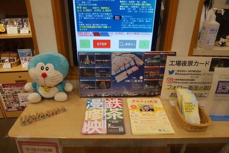JR川崎駅の改札を出てちょっと歩いたところにある観光案内所で、アクセスばつぐん。ドアを入ってから半分が観光案内所で、もう半分が行政の手続きができるところといったパターン。ゆえに、けっこう遅い時間(19時前くらいだったかな)に訪れましたが利用できてありがたかったです。