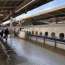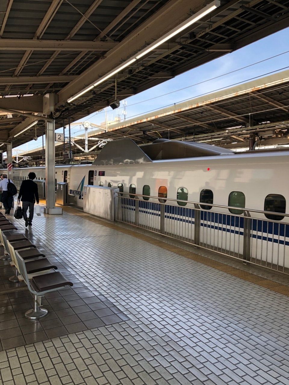 白いボディカラーに青いラインで誰もがよく知る馴染み深いデザインの新幹線です。