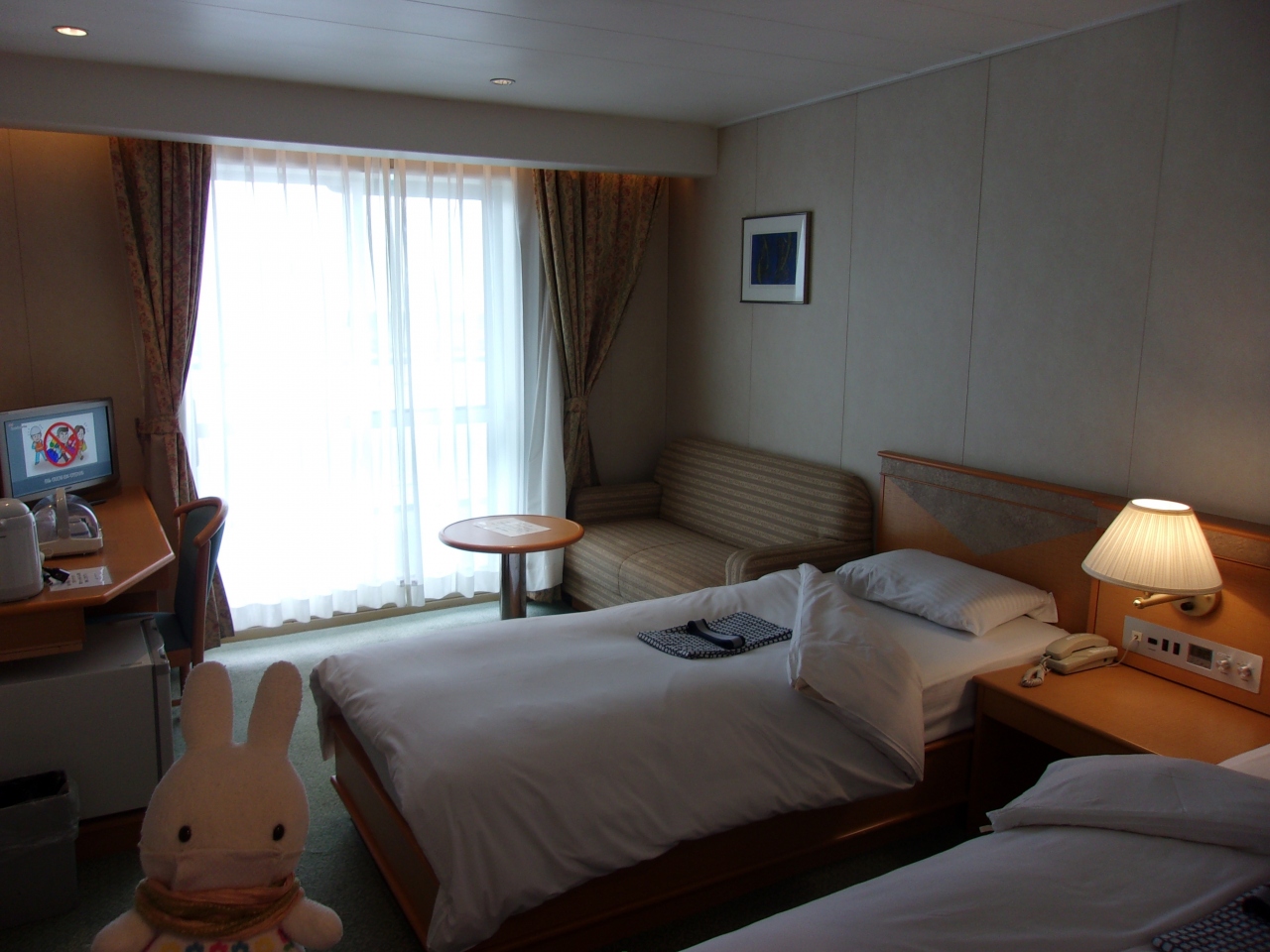 ツインベットにテラス付きのお部屋です。