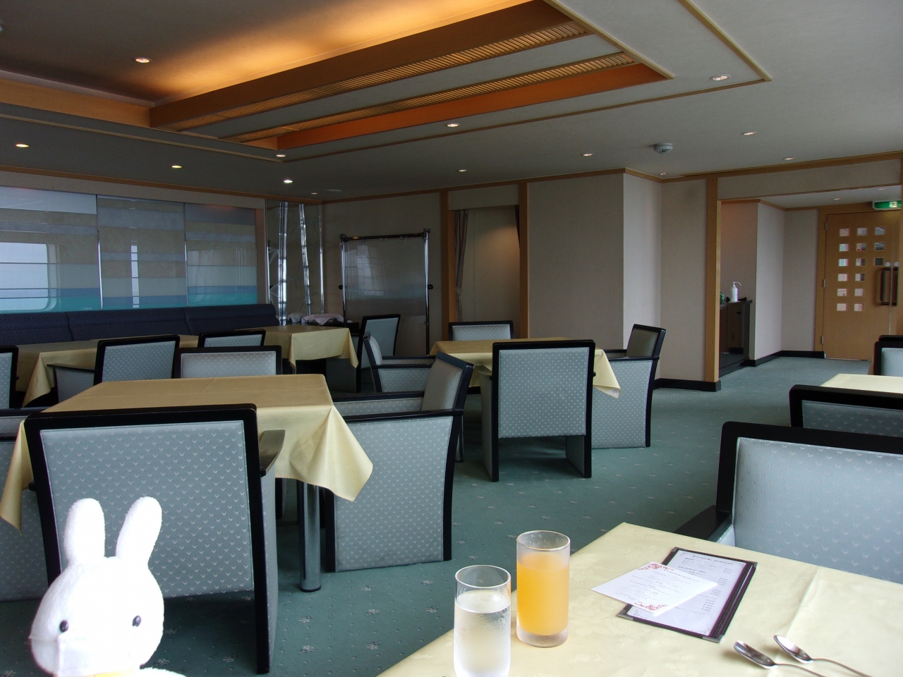 ほぼ独占!テラス付きのデラックスルーム、フルコースの料理、大浴場、快適な船旅