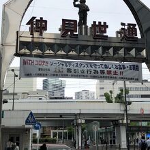 エントランスのゲートが駅前ロータリーに面していて目立つ存在の商店街です。