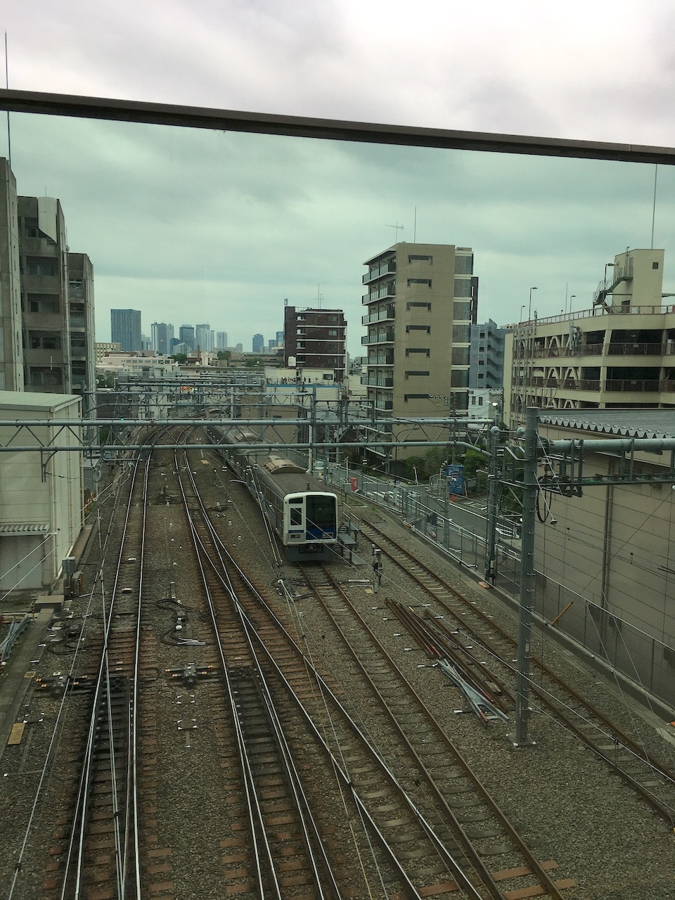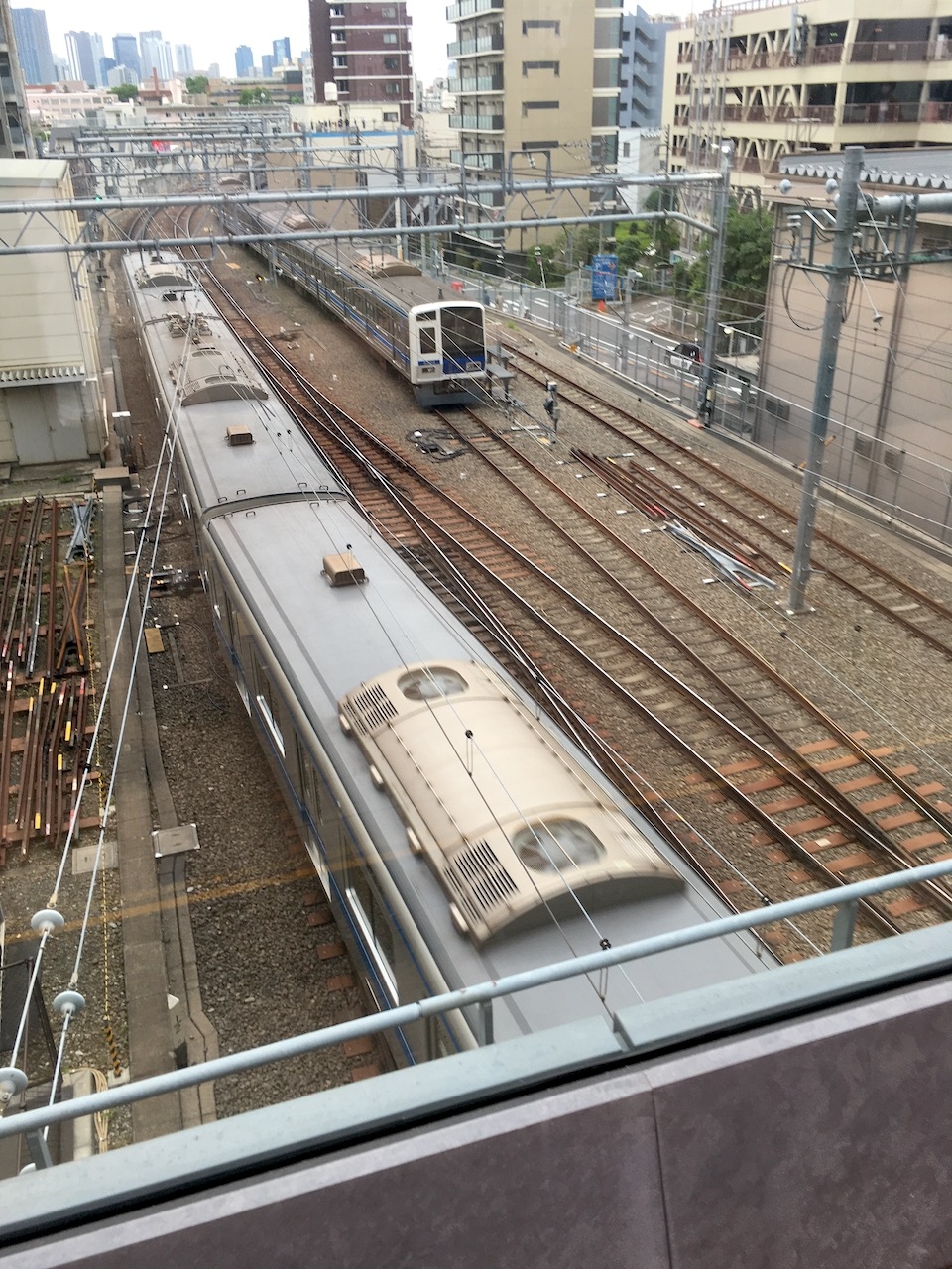 ダイヤゲート池袋の2Fテラスの下に路線があり、池袋駅から出ていく車両が見えました。
