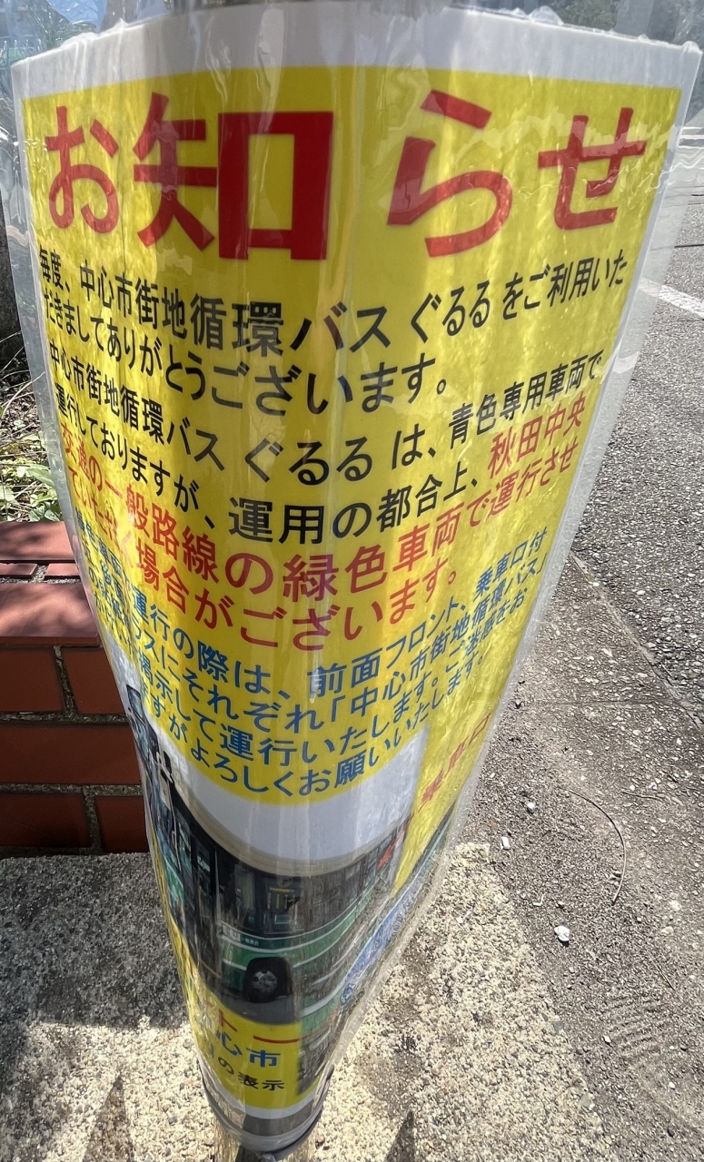 「秋田中央交通」の一般路線の 緑色車両で運行する場合もあるようで、