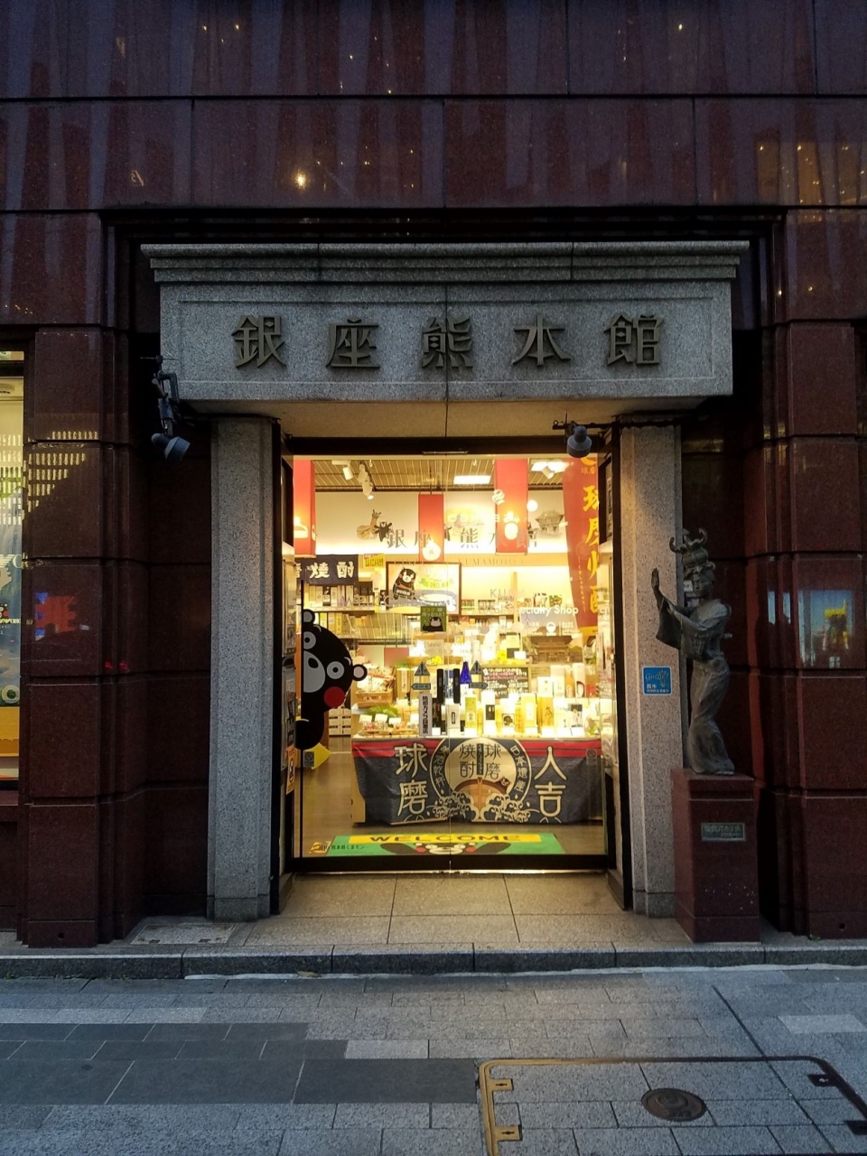 数寄屋橋交差点から外堀通りを新橋側に歩いてすぐの少しレトロな建物にあります。入口を入った所に所狭しと熊本の物産品が並んでいてお菓子や食料品、お酒など何でもありそうな品揃えでした。アンテナショップは以前訪れた地を思い出して買うも良し、熊本城などの被災地を応援するために買うのもよしですね。