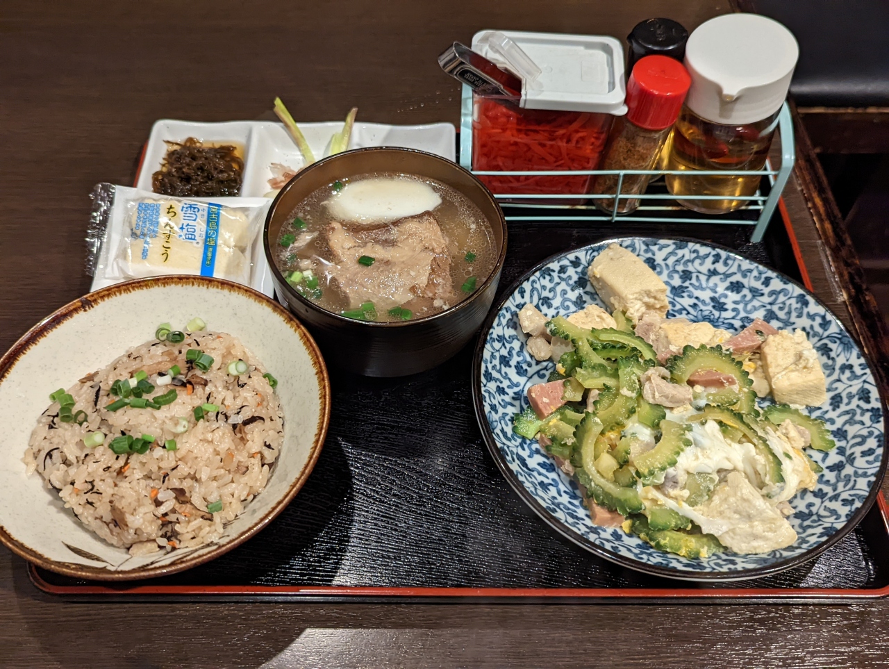 Perhaps because the restaurant has an izakaya atmosphere, there is a very wide variety of alcoholic beverages as well as the food served. Because of the large number of seats, the serving style and seasoning tend to be a bit clunky as the number of patrons increases. However, the food is typical Okinawan cuisine without any pedantry, so you can enjoy your meal with peace of mind.