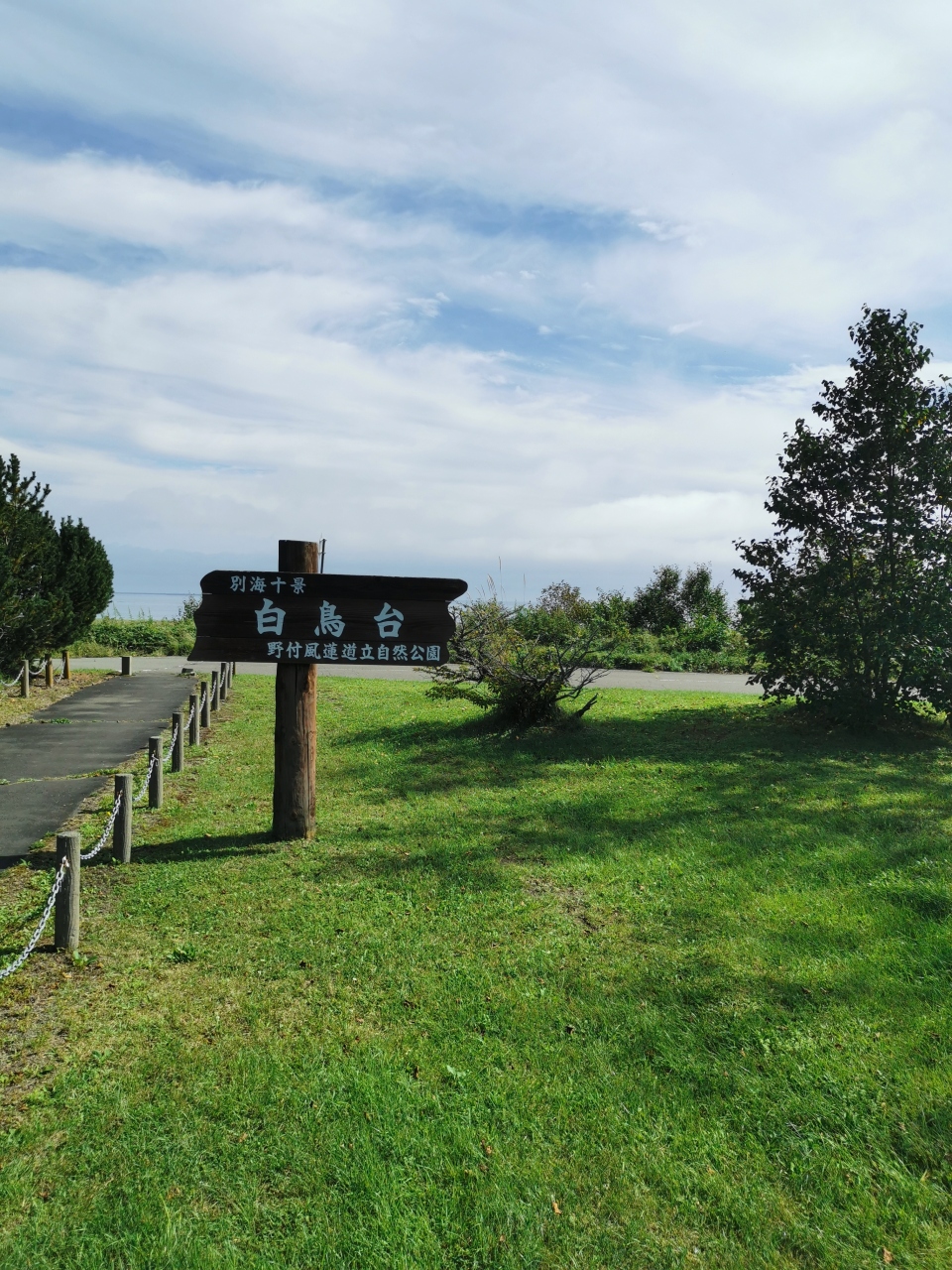 白鳥台は「道の駅 おだいとう」の敷地内にありました。北方展望塔がある春別川河口高台が白鳥台と呼ばれているそうです。毎年12月から3月にかけては、白鳥が集まるポイントだそうです。目の前は海で、野付半島が見えました。真冬にはここからは「四角い太陽」が見られるそうです。