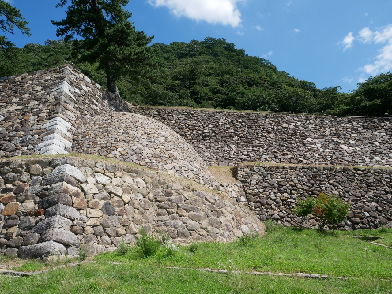 ただ、見どころは、やっぱり下の方、石垣でしょうか。特に、珍しい丸型、天球状の石垣もみることができます。