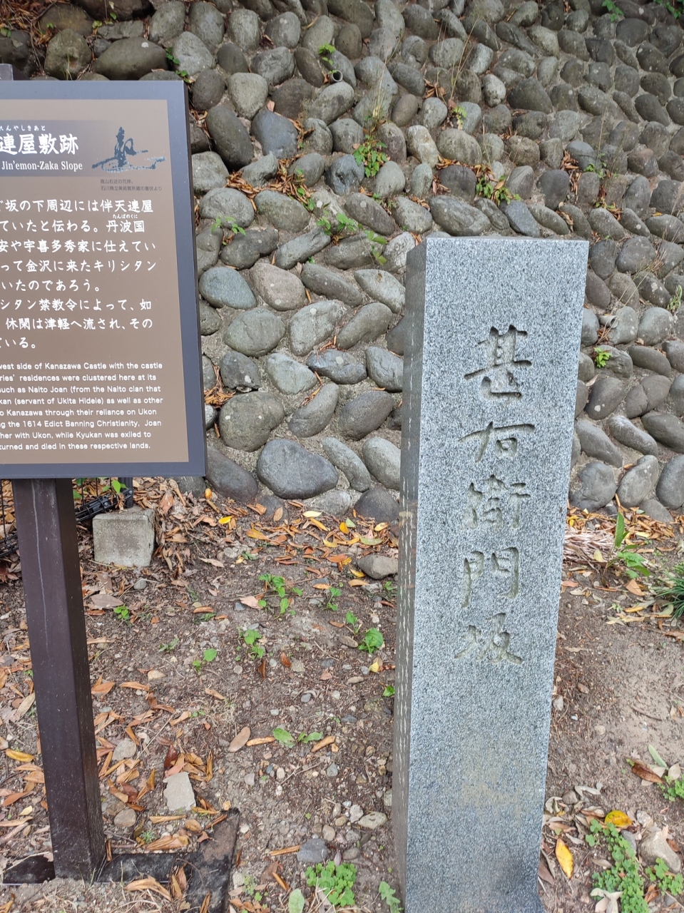 金沢城の北西側にあります。尾崎神社を見学後に金沢城に向かったので通りかかり、ここからは入れるのかと思ったら、一般の人間は通り抜けができないようです。ここで亡くなった浪士の名が由来みたいです。パッと見はごく普通の坂でした。