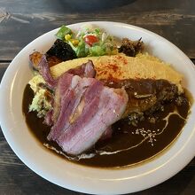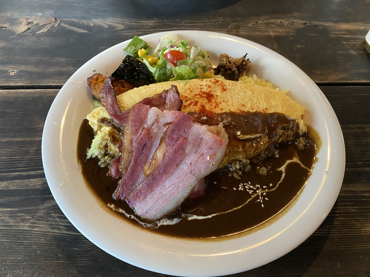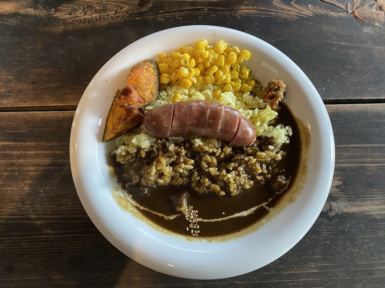 ソーセージカレーとオムカレーにベーコントッピングをオーダー
