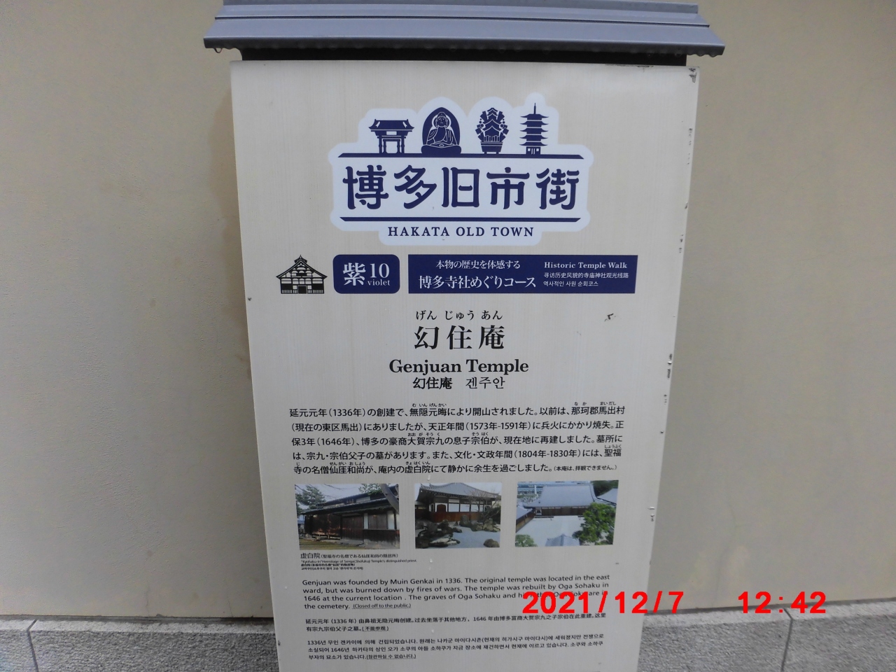 福岡市博多区観光で立ち寄りました。天目山「幻住庵」は、御笠川沿いにある臨済宗妙心寺派の寺院で、塔頭は6寺もありました。14世紀前半に無隠元晦により創建され、当初は広大な敷地を有しており、聖福寺、承天寺と並び称せられた規模だったそうです。開山堂は木戸を開けて中に入って見に行けるようになってました。