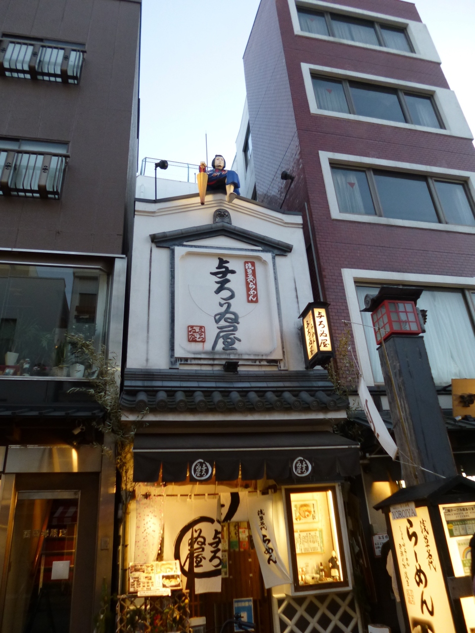浅草寺の参道途中にある伝法院。仲見世通りを間に東側と西側に伝法通りが伸びています。東側の伝法院通りは、スカイツリーが正面に見え、お店も新しいものが多く、屋根の上などに白波五人衆の姿が。西側は古くからあるお店が並んでいて、江戸時代から引き継がれた技術を感じられるお店もあります。